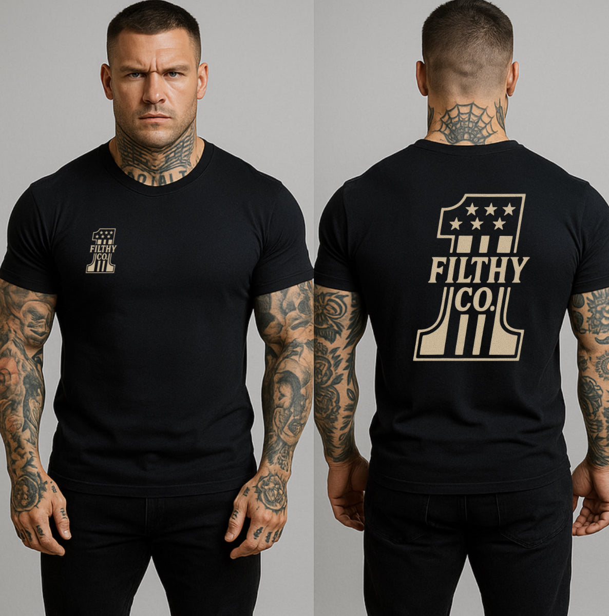 On the front, a clean chest print sets the tone. On the back, the oversized #1 Filthy Co. graphic takes center stage — repping that champion energy wherever you go.